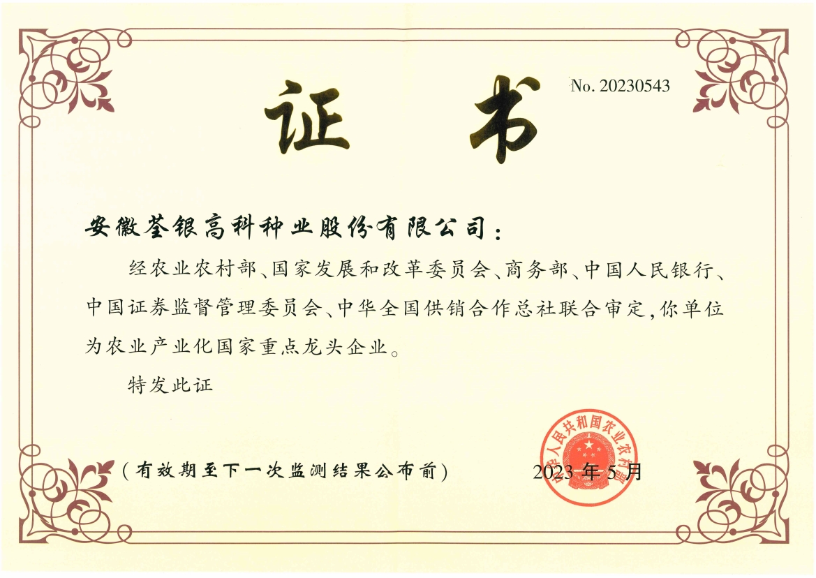安徽荃銀高科種業股份有限公司是一家“以種業為核心、農業服務為延伸、探索和創新農業多元化發(fā)展”的現代高科技種業上市公司,證券代碼:300087。公司注冊資金9.47億元,系“中國種業領軍企業、農業產業化國家重點龍頭企業、國家高新技術企業、農業部首批農作物種子育繁推一體化企業、中國種業信用明星企業"。在國內控股子公司20多家,在國外設立分支機構4家,良種銷售至全國20多個省(市、區),出口覆蓋20多個國家與地區,種業綜合實力、雜交水稻研發(fā)、推廣及海外業務規(guī)模均居全國種子企業前2位。